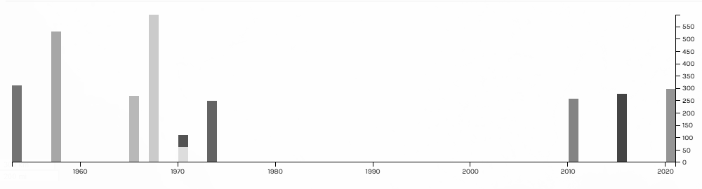This shows the different publication dates of the books.Map of Book Locations where it is all the books are from America.Shows the number of pages in each book.